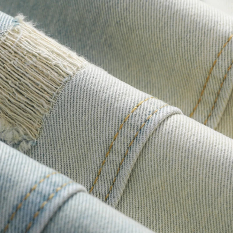 Men's Summer Ripped Jeans Loose Straight Leg Retro Men Draw Rope Port Fashion Brand All-match Casual Pants